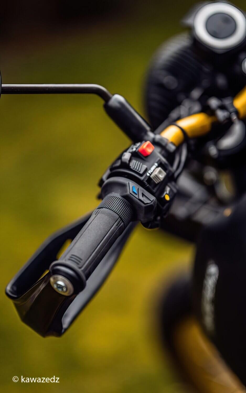 Onze HG13 handvatverwarming heeft een geïntegreerde duimschakelaar en kan op alle standaard motorfietsen worden geïnstalleerd. Dankzij de geïntegreerde duimschakelaar kan de berijder de temperatuur van de handvatten veilig veranderen zonder zijn handen van het stuur te halen.