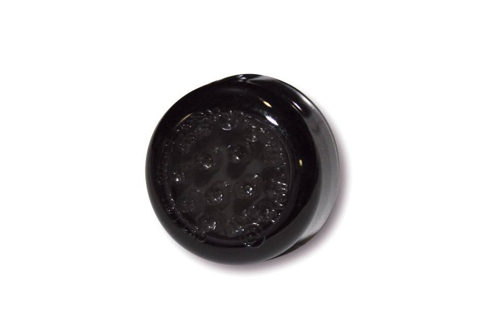 Rond mini LED-achterlicht om te schroeven met rooklens. De kabels lopen in de schroef, gemarkeerd met E-markering.