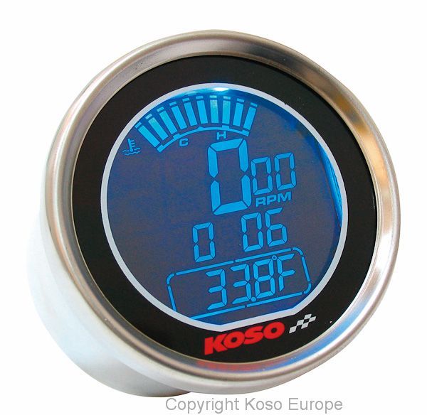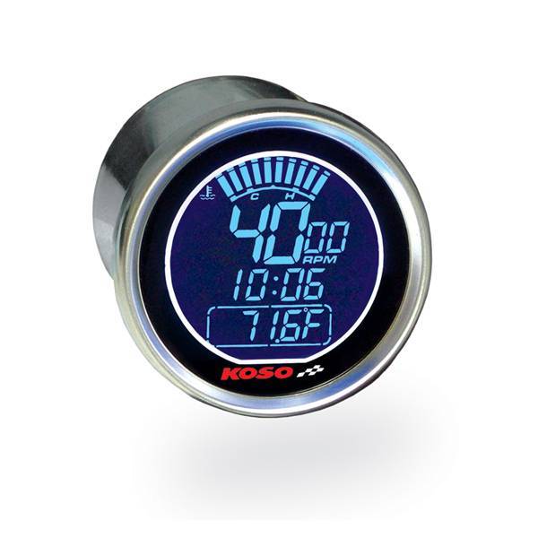 Om de LCD-serie naar de nieuwste stand van de techniek te brengen, hebben we dit instrument met een nieuwe LCD-weergavemethode gebruikt, waardoor het scherm zelfs in fel zonlicht leesbaarder is. Het blauw oplichtende numerieke display op de zwarte achtergrond is bijzonder aantrekkelijk, uniek en ook de digitale weergavemethode in vergelijking met het analoge alternatief is bijzonder nauwkeurig en duidelijk. Een ander voordeel van dit weldoordachte instrument is de flexibiliteit. Door dit instrument te combineren met de Koso LCD-snelheidsmeter heeft u alle relevante informatie in één oogopslag. Een uniek accessoire dat het besturen van uw voertuig nog aangenamer maakt.