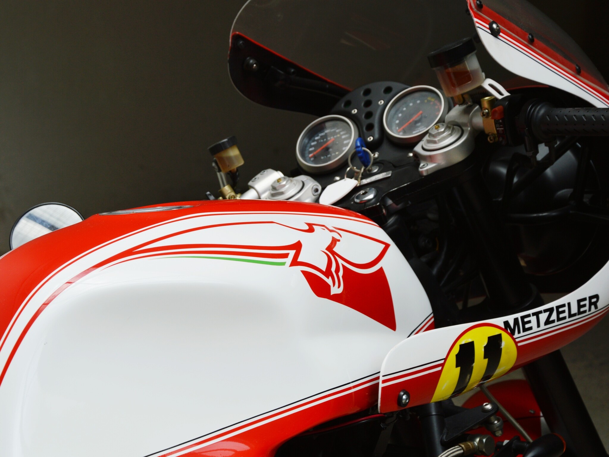 De motor is opgebouwd op basis van een Moto Guzzi V11 Cafè Sport uit 2005 die ik sinds 2011 in mijn bezit heb. De aanpassingen omvatten een aangepaste brandstoftank van glasvezel, een aangepast monozadel, kuip en motorspoiler. Alle onderdelen en het lakwerk zijn ontworpen om de motor een esthetische uitstraling te geven die de vintage look van een Bol d'Or-racer uit de late jaren 70 perfect combineert met de moderne ziel van een hedendaagse motor.