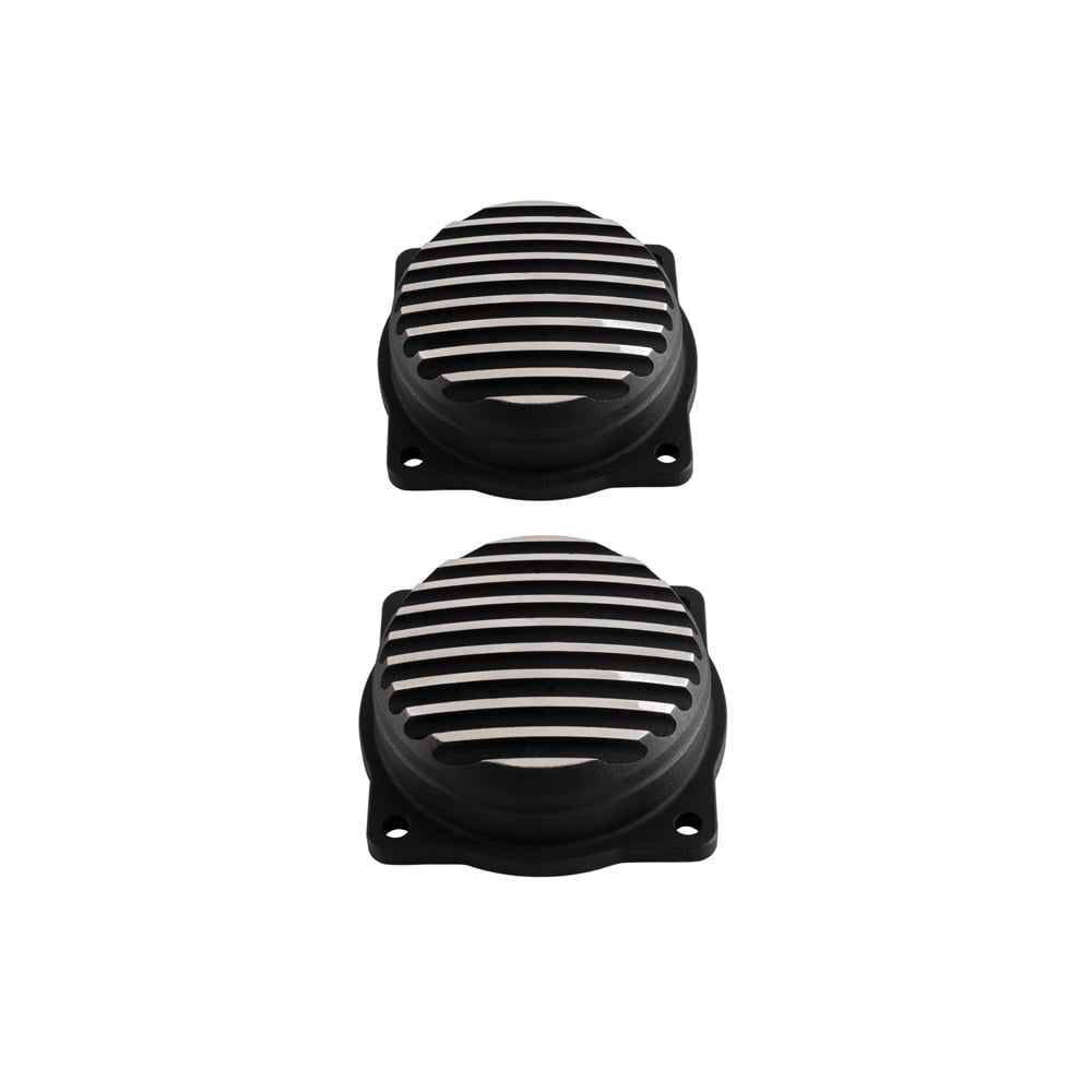 Beste kwaliteit Finned EFI paar gasklephuis Carb Tops op maat CNC gefreesd uit luchtvaart kwaliteit billet 6061t aluminium in zwart met contrast gesneden vinnen.