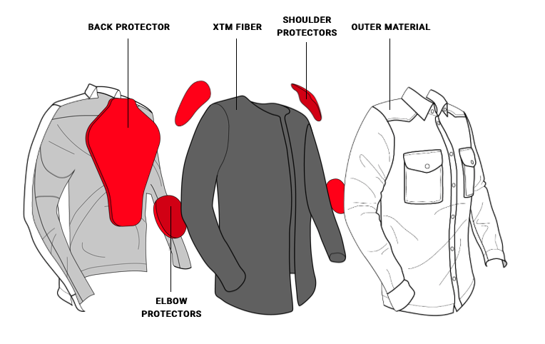 Motoshirt Grijs/Zwart met Xtm protective fabric