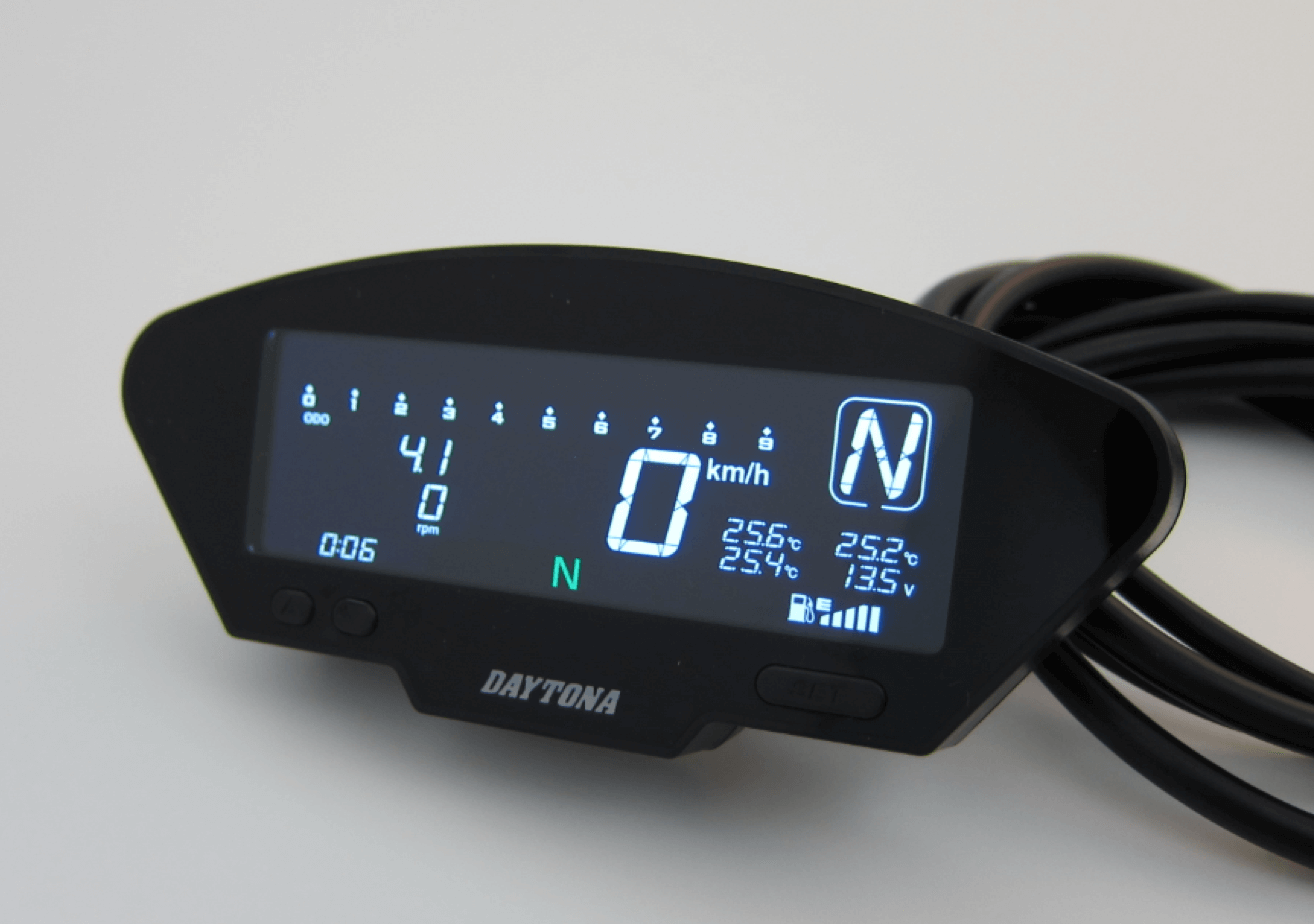 Daytona Multifunctionele cockpit. Super gaaf en uniek! Deze Daytona-meter met zowel RPM als KM / H!