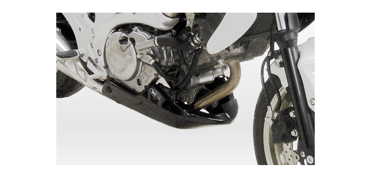 Deze onderkuip beschermt tegen modder en andere dingen die anders op het motorblok of de uitlaat zouden komen.