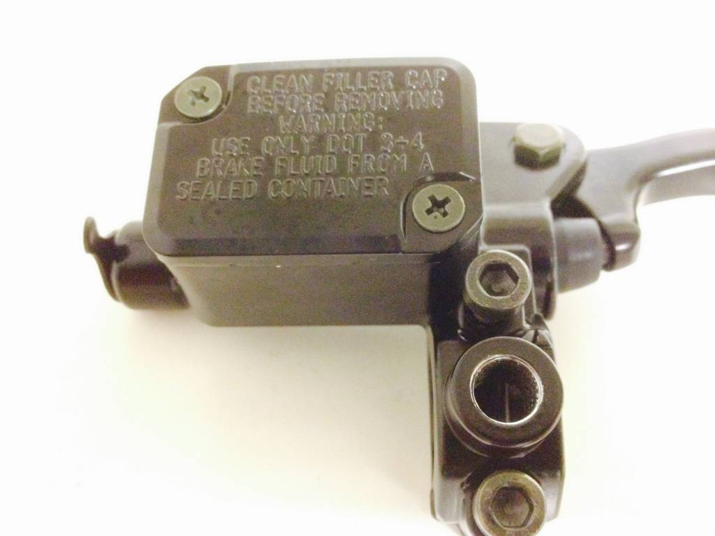 Mooie universele zwarte rempomp met reservoir. Ideaal voor allerlei verschillende lichte motoren met 1 schijf. Passend op een 22mm stuur.