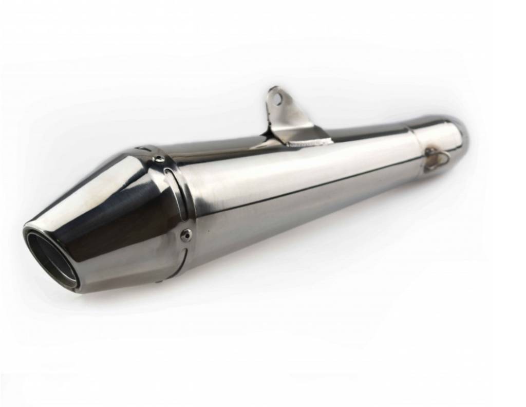 Handgemaakte RVS GP Demper + dB-Killer. Deze onwijs stoere demper is gemaakt van RVS en komt direct met een dB-killer. De demper kan aan 2 kanten geplaatst worden.