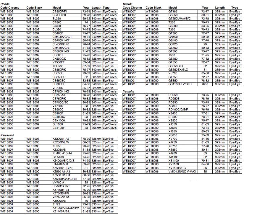 365MM = Honda: 1982 CB650SC; 79-82 CB750F/K; 81-82 CB900F; 79-82 CBX; 1983 CB1100F