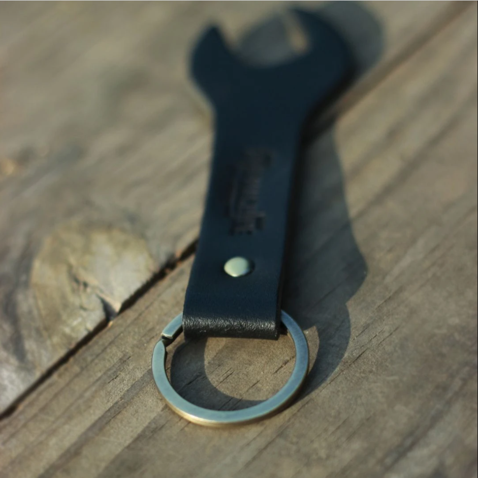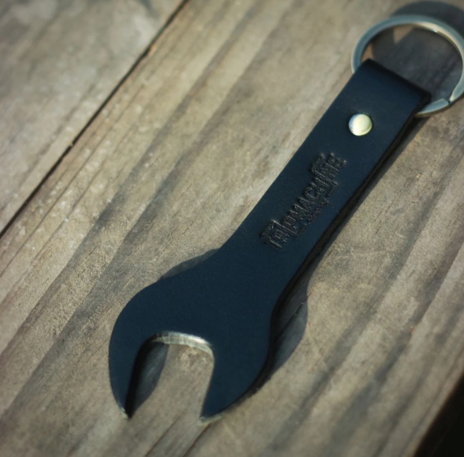 De sleutelhanger is een eerbetoon naar de kunst van het motoronderhoud.