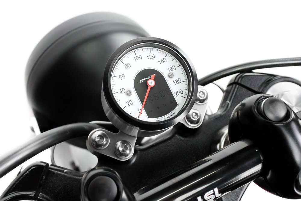 De perfecte snelheidsmeterhouder voor uw Motoscope Chronoclassic van de hightech-fabrikant Motogadget.
