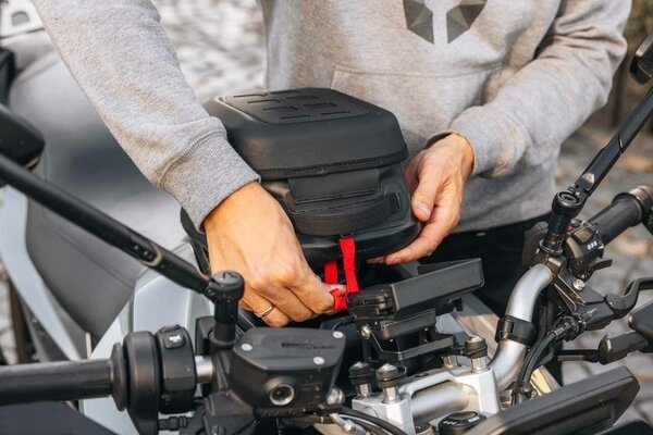 - De tanktassen kunnen met één beweging worden bevestigd of verwijderd