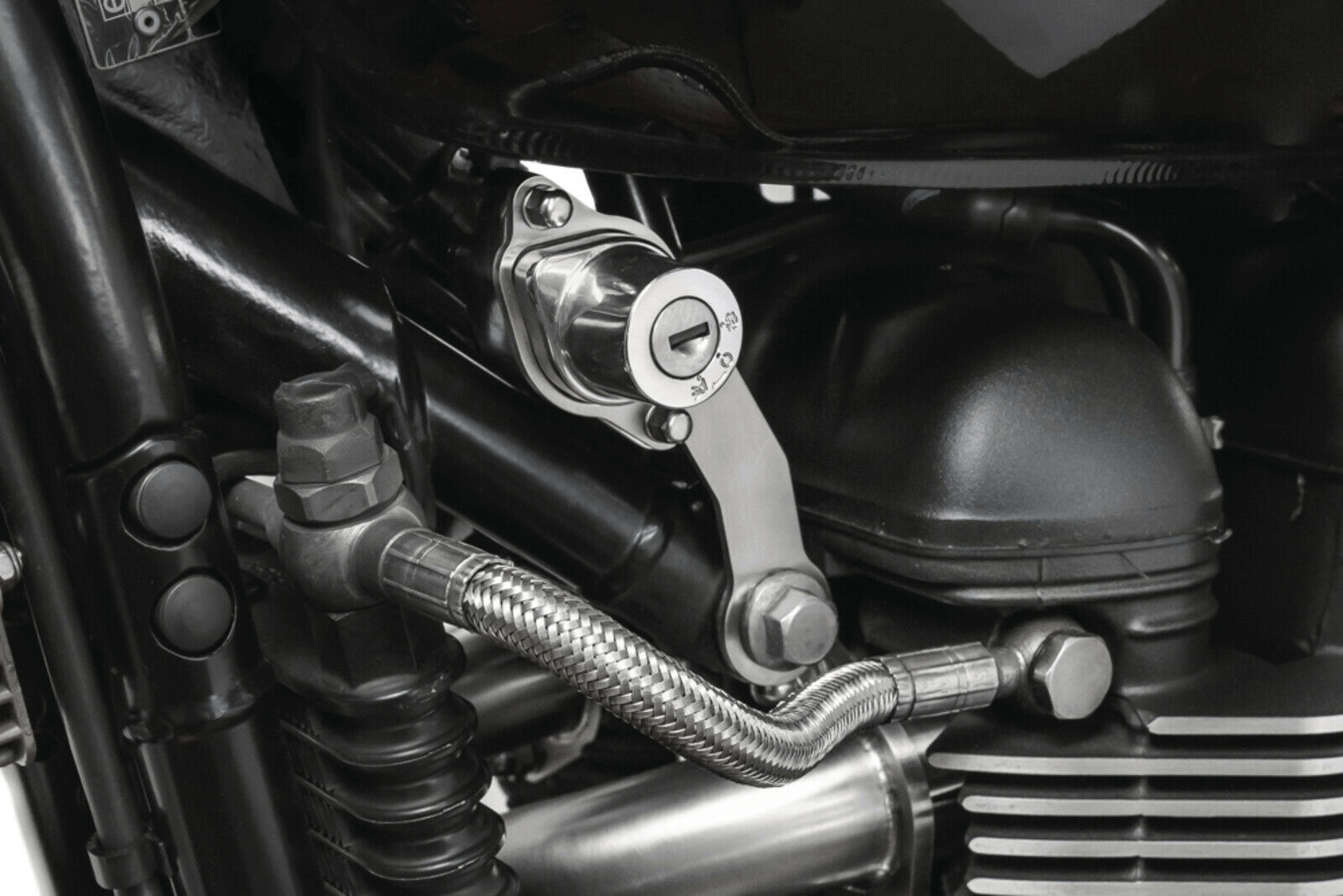 De contactschakelaarhouder dient als een optimale oplossing om uw originele contactsleutel discreet onder de tank te installeren. Het minimalistische ontwerp van de houder past perfect in de algehele look van uw conversie.