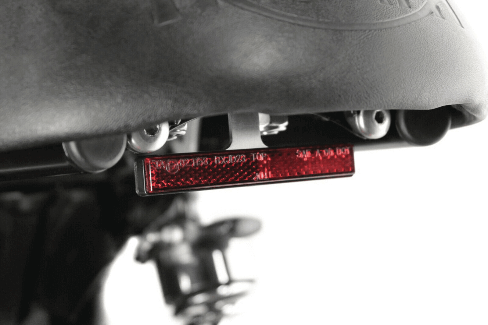 Met de reflectorhouder monteert u uw reflector esthetisch in de "spatbordloze" achterkant. Dankzij het minimalistische ontwerp is de algehele look van uw conversie aanzienlijk geoptimaliseerd.