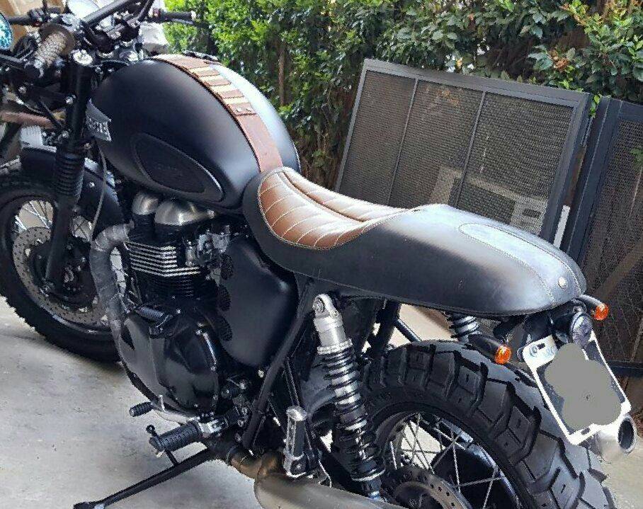 Triumph Tankstrap met Glove Holder. Dit maakt je Triumph, Bonneville, Scrambler of Thruxton ECHT af! Uniek in zn soort, handgemaakt en gewoon erg gaaf!