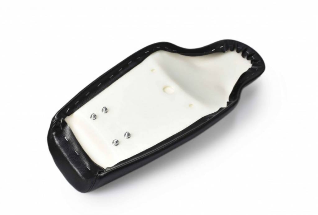 Tuck N' Roll Brat Seat - Zwart "Curved". Special zitje die meeloopt met een gebogen frame; een probleem dat je regelmatig tegenkomt bij het verbouwen van je motor.