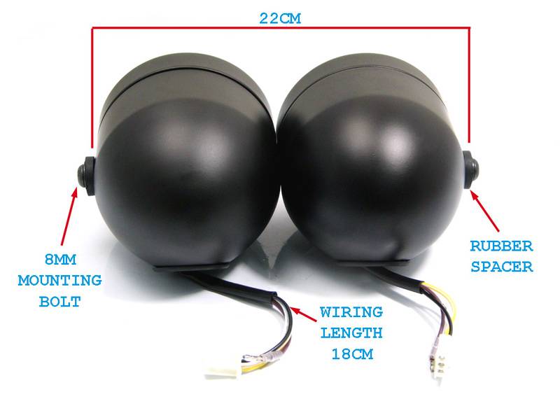 Materiaal is metaal en de afwerking matzwart. De lampen komen zelfs met een parkeerlicht stand!