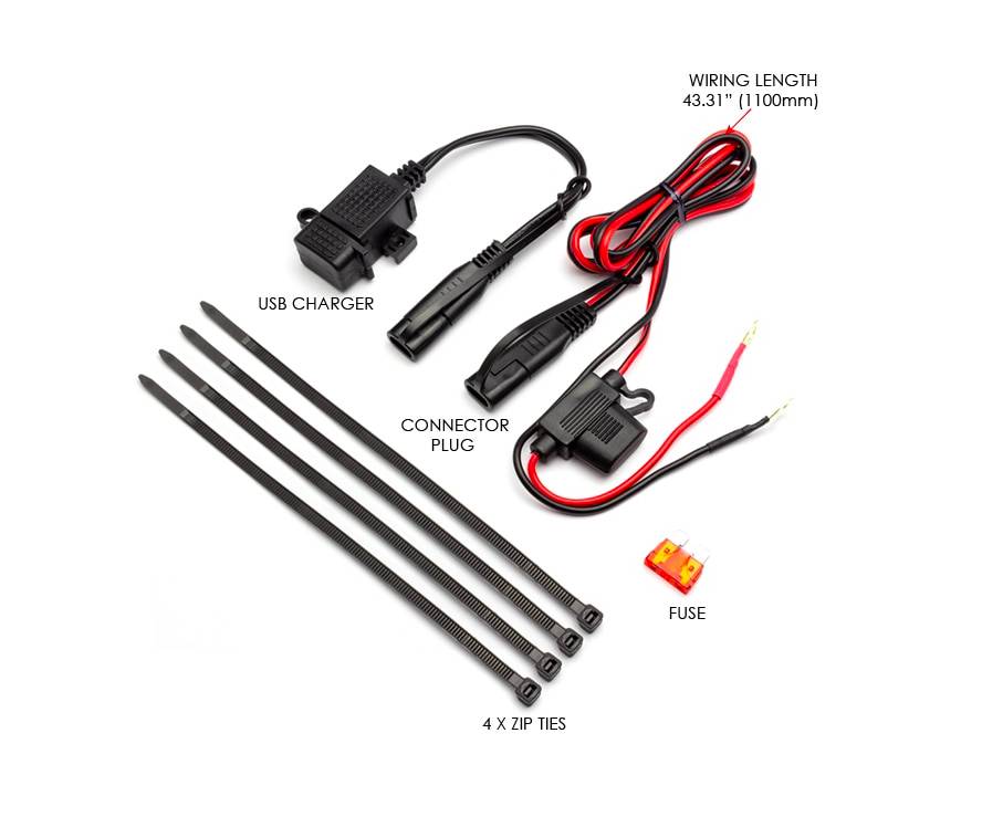 Hoogwaardige USB-voeding met lange kabelboom voor het opladen van elektrische accessoires. Sluit rechtstreeks op uw batterij aan en heeft een inline-stekker waarmee de kabel snel uit het voertuig kan worden verwijderd wanneer geen stroom nodig is.