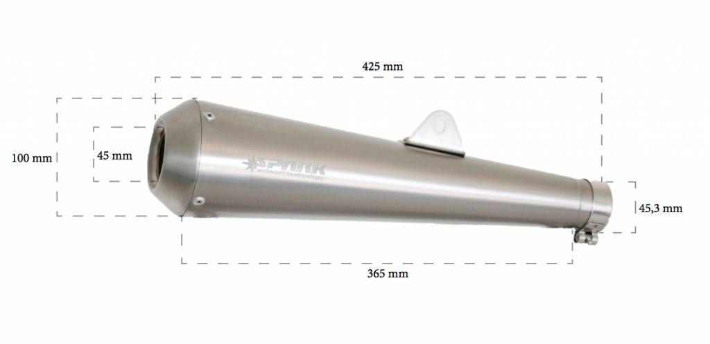 De aansluitdiameter van deze fantastische Spark demper is 45,3mm.
