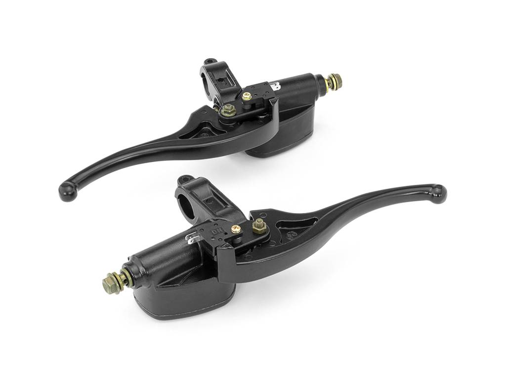 Deze unieke hendelset kan op de meeste motorfietsen worden gebruikt met een hydraulische koppeling. Zowel de linker als de rechter hendels worden geleverd met een handrem-palvergrendelingshendel. Zuigerboring: 14mm
