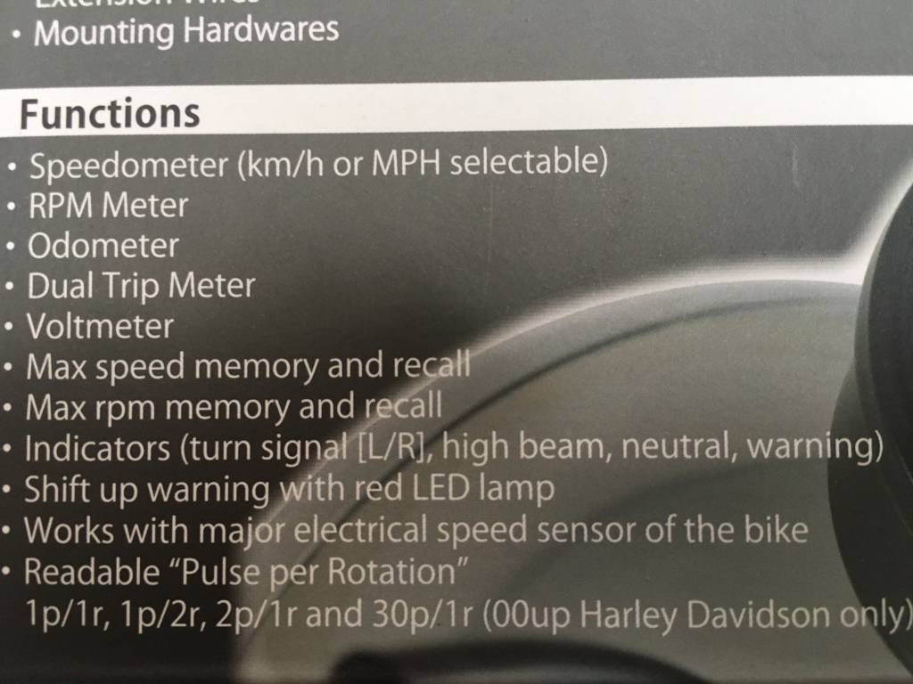 * RPM Meter: 0-20,000rpm
