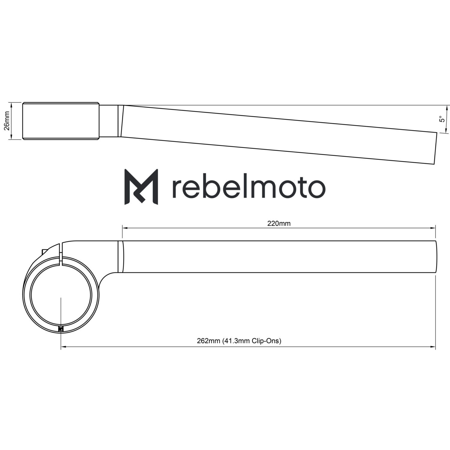 De Clip-On sturen zijn 220 mm lang en in tegenstelling tot veel andere clip-ons kun je ze over de hele lengte gebruiken. Sommige hoofdremcilinders met een vast reservoir kunnen lastig te installeren zijn omdat ze te dicht bij het klemgedeelte van de clip-on komen. Door het ontwerp is dit niet het geval bij de Rebelmoto Clip-ons.