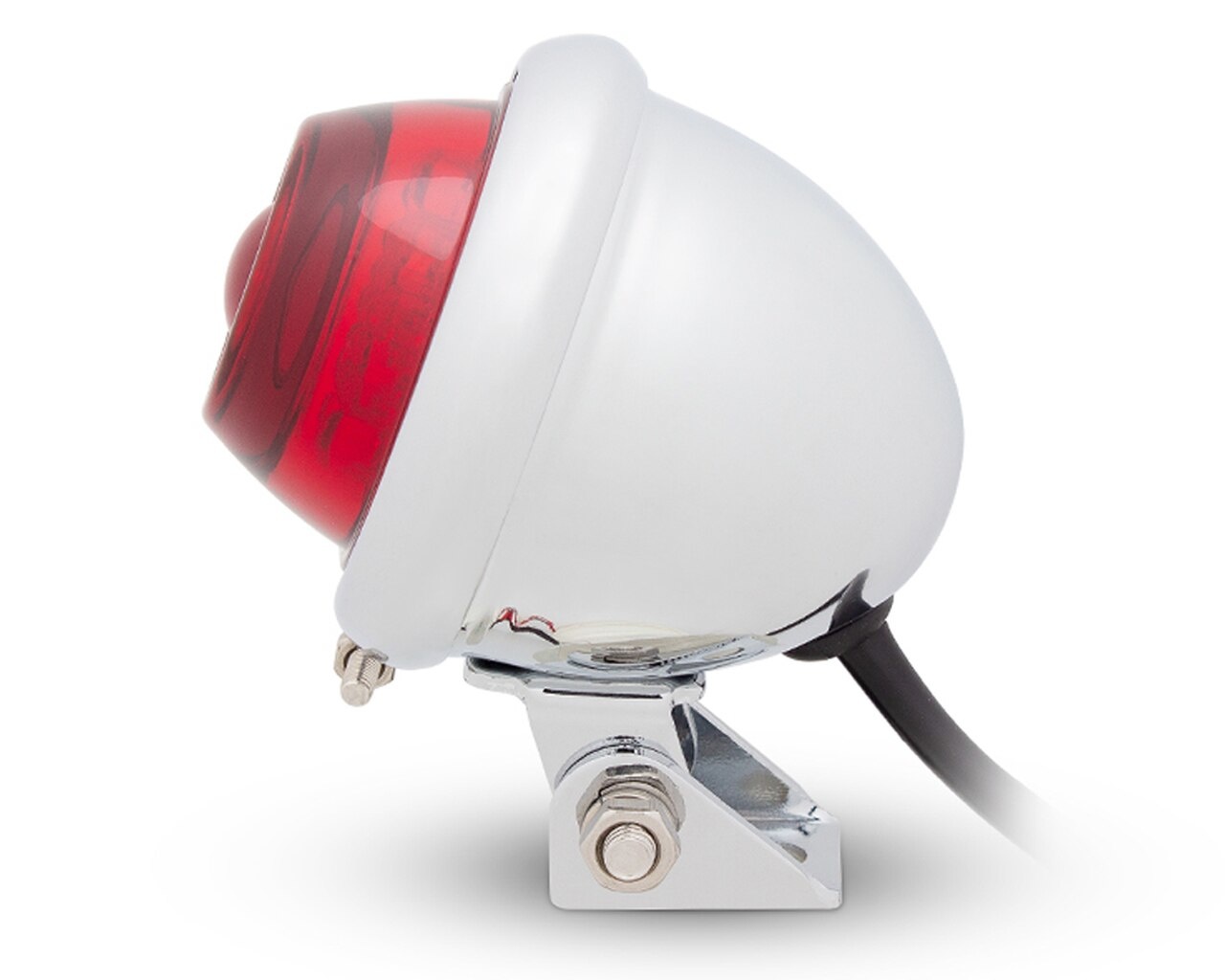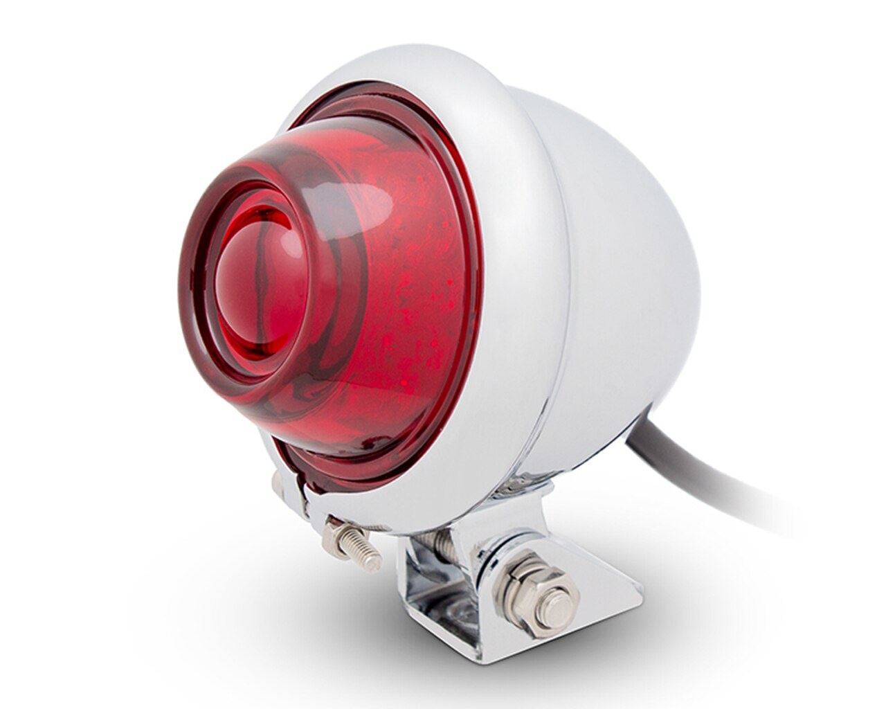 Vintage Retro LED Achterlicht Rood / Chrome . Zeer mooi lampje met een erg nette afwerking. Dit achterlicht is te verstellen in hoogte en staat mooi op zowel chop