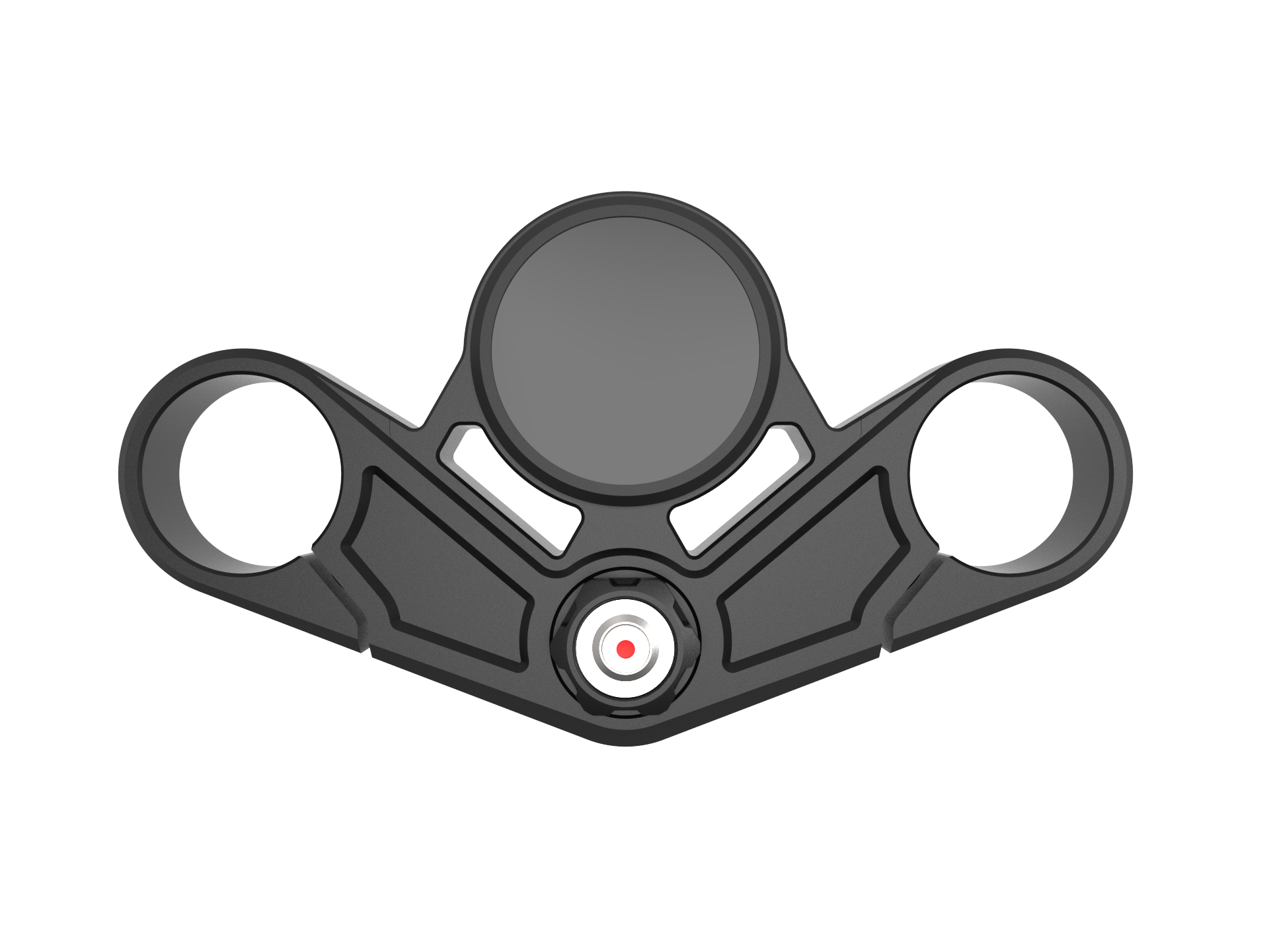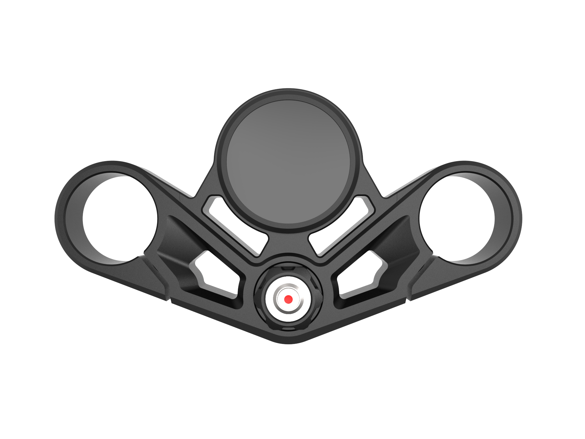 - Aluminium bovenste juk, geanodiseerd in zwart, klaar voor elke 80 mm speedo-integratie (Motogadget Chronoclassic, Daytona Velona 80 etc.) met blinde roestvrijstalen bevestigingsbout