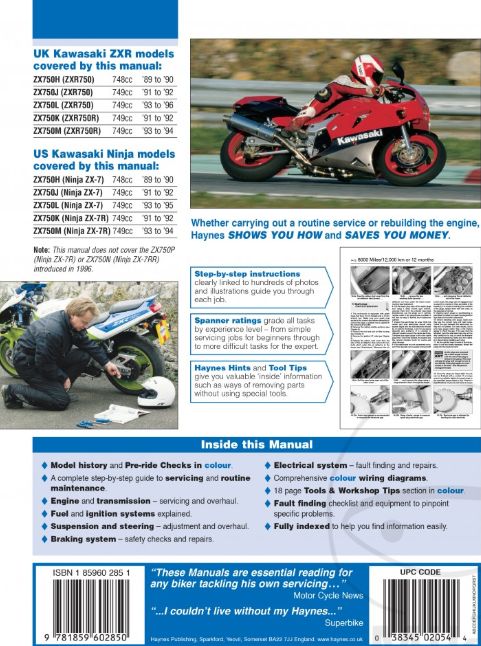 Werkplaatshandboek KAWASAKI ZXR750 UK 89-96 ZX750 ZX-7 89-95