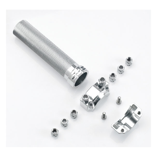 Voor stuur "1". CNC-gefreesde legering gasklephuis met gegoten aluminium klem. Incl. twee sets van vier kabelhulzen voor universele en standaard 74-95 schroef, 81-95 schroef & 96-up borgringontwerp HD-toepassingen en aangepaste kabels in een enkele of dubbele kabelopstelling in combinatie met een "1" diameter stuur. Zal standaard HD-gashendels nemen.