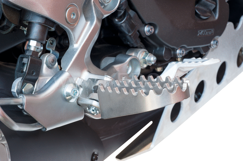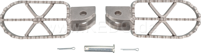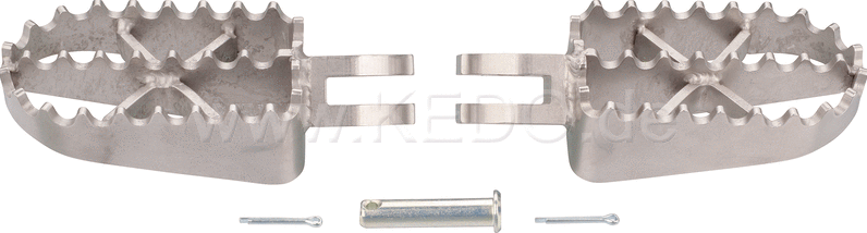 Wrenchmonkees "Monkeebeast" Getande voetsteunen, 1 paar, enduro-stijl. Gelast roestvrij staal, elektrolytisch gepolijst. Loopvlak ca. 46x84mm.