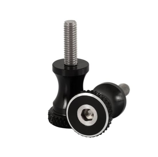 Dit is de korte versie (28 mm zonder schroefdraad) die bij montage de laagst mogelijke look op uw motorfiets behoudt. Geïntegreerde roestvrijstalen zeskantbout, zodat deze indien nodig kan worden vastgedraaid met een inbussleutel - gekartelde zijkanten voor minder draaien van het gereedschap.