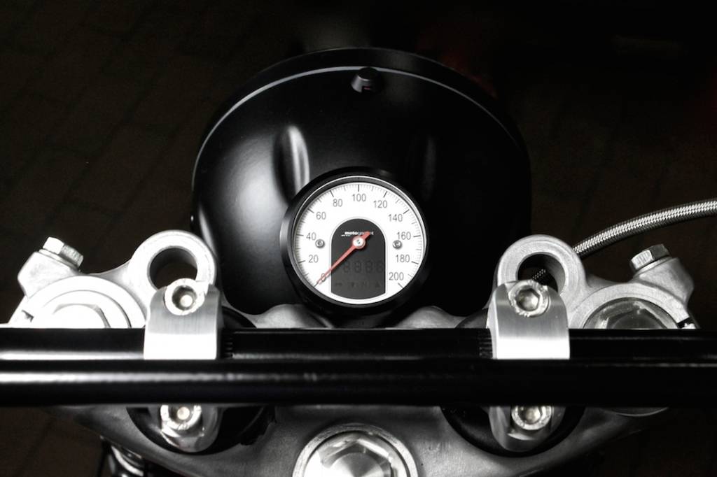 Propere voorkant, dankzij de prachtige snelheidsmeter van Motogadget